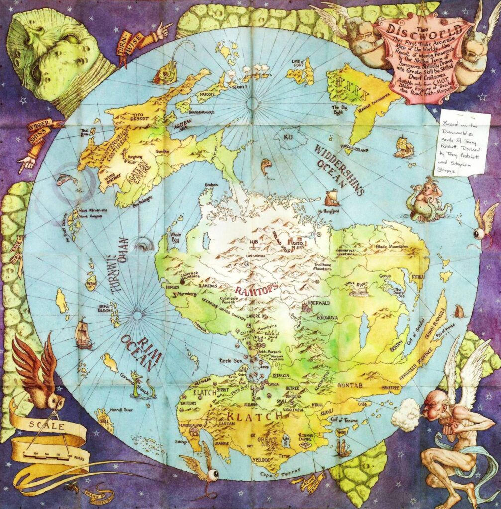 I’m conflicted over including this entry, as none of the Discworld books include a map in them. But, over 41 novels, there’s no denying that Terry Pratchett built an incredible world. Aside from the fact that it’s a world resting on the backs of four great elephants, all stood on the shell of a space-surfing turtle, there’s just so much geography, history, and variety on the Discworld! Although most of the Discworld was created as nearly-always clear satire of places on Earth, you can’t deny that when you put them all together, they do result in a pretty gorgeous map.